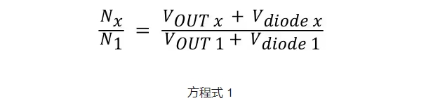 在所有 SEPIC 中,初级绕组与 VOUT1 绕组之间的匝数比必须为 1:1。但所有其他输出都不受此匝数比的限制,您可以对其进行调整以提供任何所需的输出电压,可以使用方程式 1 轻松计算出输出电压: